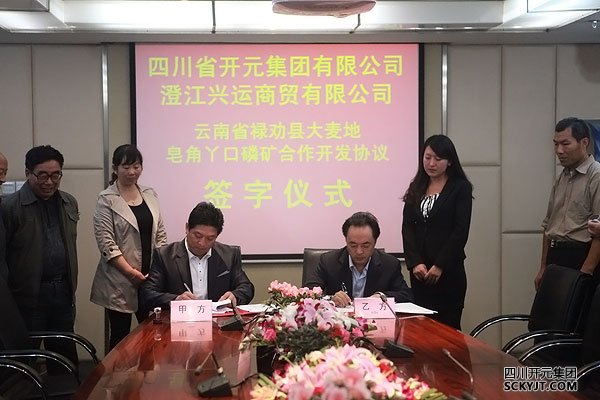 本網訊 2012年10月9日,云南省澄江興運礦業有限公司總經理溫連云一行蒞臨開元集團,集團董事長、總裁趙思儉,集團副總裁、開元礦業總經理李后蜀及相關工作人員出席了會議,在會議中就勘探開發磷礦資源項目進行了友好協商,并簽署了四川開元集團與云南省澄江興運商貿有限公司有關云南省祿勸縣大麥地皂角丫口磷礦合作開發協議,共同勘探與開發大麥地皂角丫口磷礦資源。此次合作將對集團進一步做大做強,加強稀缺性資源磷礦的戰略儲備起到重要作用。