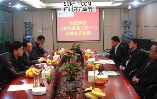 11月27日,新疆尼勒克縣縣委書記吳奉軍一行四人到集團考察訪問。集團董事長、總裁趙思儉,總裁助理楊大平等與吳書記一行進行了親切的溝通和交流。