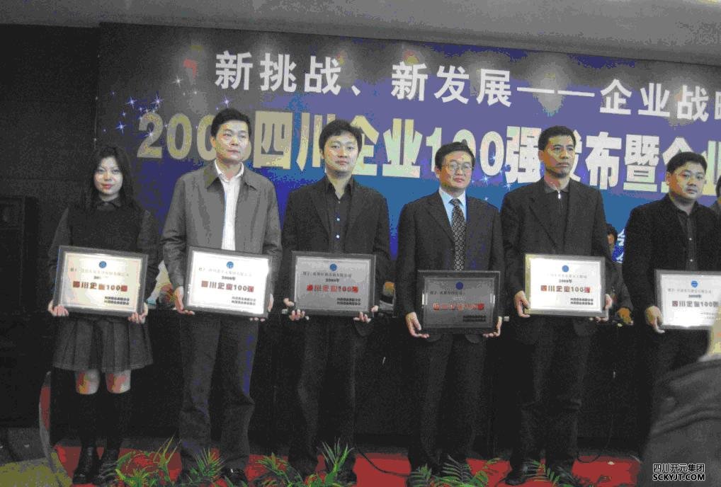 11月6日,2008四川企業百強發布暨四川企業發展峰會在成都市隆重召開。四川省企業聯合會、四川省企業家協會向社會公布了2008四川企業100強名單,開元集團連續3年入圍,名列第三十二位。集團副總裁譚昌敏代表開元集團領取銅牌。 “2008四川企業100強”是在四川省經濟主管部門和中國企業聯合會的指導下,按照國際通行方式,通過對企業2007年度的銷售收入、利潤、所有者權益、資產總額、研發費用等指標進行綜合分析評選出來的。開元集團在銷售收入、利潤率、資產總額等子榜單上,均位列川企100強前列。其中利潤增長率位居18位,資產增長率位居12位。四川企業100強的評選,為四川省經濟工作提供了客觀的參考依據,對“工業強省”戰略和實施大企業大集團培育計劃具有重要指導意義。 大會以“新挑戰、新發展——企業發展戰略轉型”為主題,對企業發展進行了深度剖析和點評,推出了《四川企業發展報告(2008)》,該報告對大企業大集團的發展具有重要參考價值。(左二為集團副總裁譚昌敏代表集團領取獎牌)