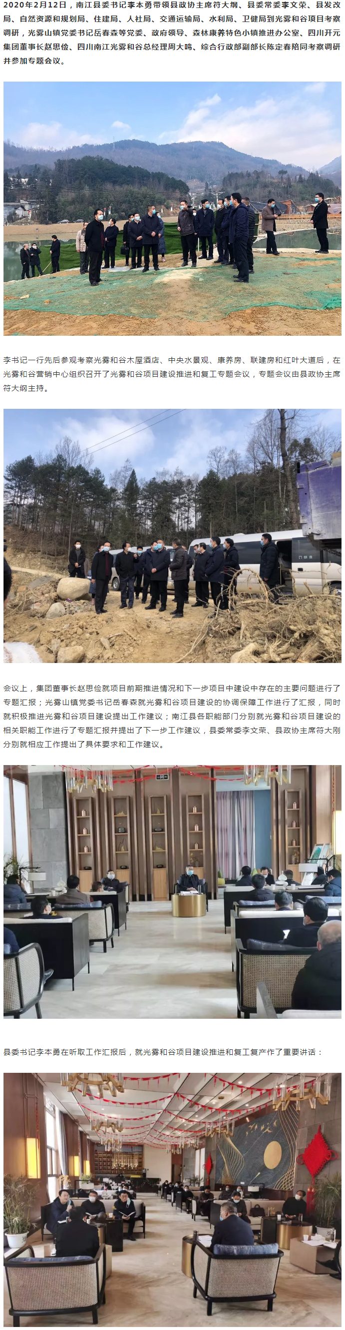 南江縣委書記李本勇調(diào)研光霧和谷