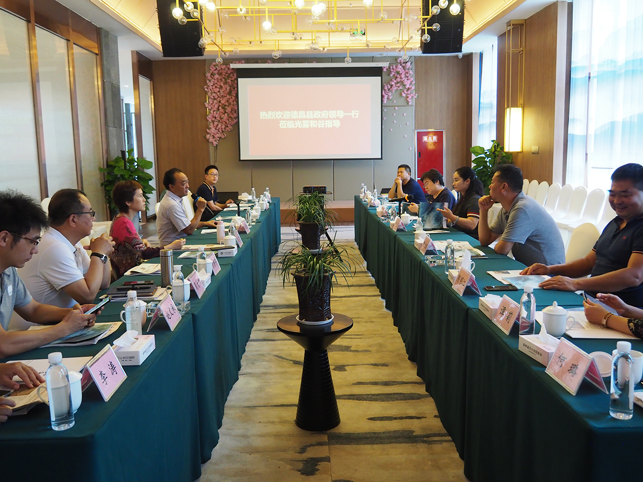 陪同李友英縣長考察座談的有德昌縣委常委、總工會主席劉慶紅,德昌縣委常委、政法委書記魏兆剛,德昌縣委政府副縣長陳明江,德昌縣政府辦副主任黃利丹,德昌縣商務經濟合作和外事局局長譚莉,德昌縣文化廣電和旅游局局長張強,德昌縣府辦羅超,德昌縣商務經濟合作和外事局何璐。開元集團副董事長、德昌鳳棲和谷董事長趙文承,開元集團副總裁范力,光霧和谷負責人,鳳棲和谷負責人陪同考察。