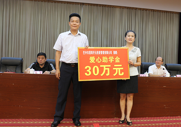 身為巴中籍企業家,集團趙董事長也始終心系家鄉教育,先后在多個學校開展捐資助學,設立獎學金,也先后三次參與“金秋助學”活動,前后捐贈八十余萬元,幫助恩陽寒門學子走進大學殿堂。