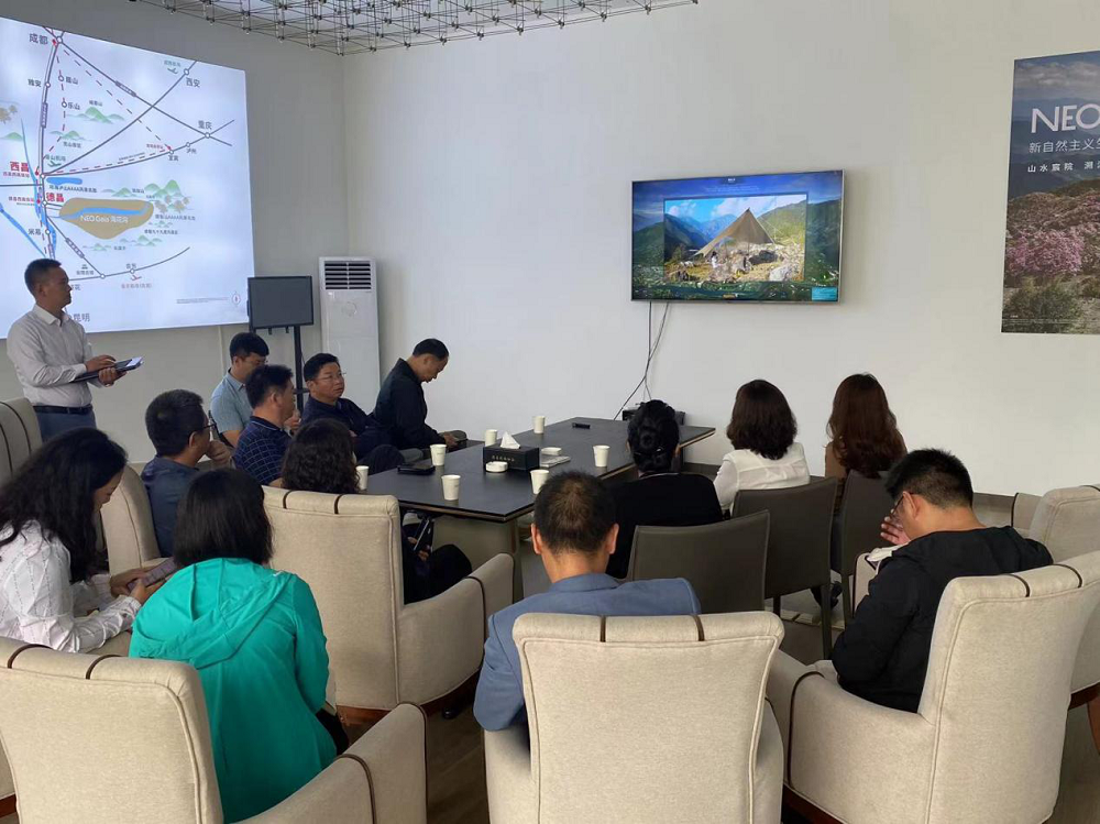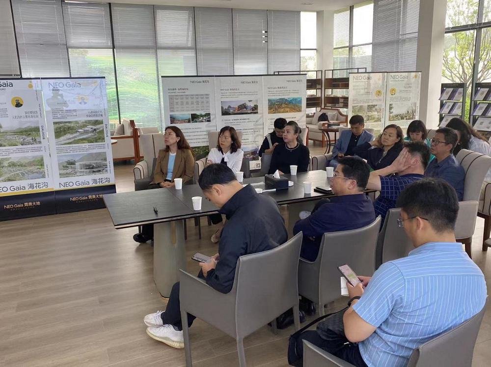 2022年6月7日,新疆第四師可克達拉市黨委常委、副政委、宣傳部部長姜淑霞;商務局黨組成員、副局長詹景艷;宏遠建設集團有限公司黨委書記、董事長陳少敏;文旅投黨委書記、董事長陳柏柳等一行到訪NEO Gaia海花溝。在鳳棲和谷旅游開發有限公司,李總和公司工作人員一起熱情接待了貴賓的到來,并陪同客人參觀游覽項目。