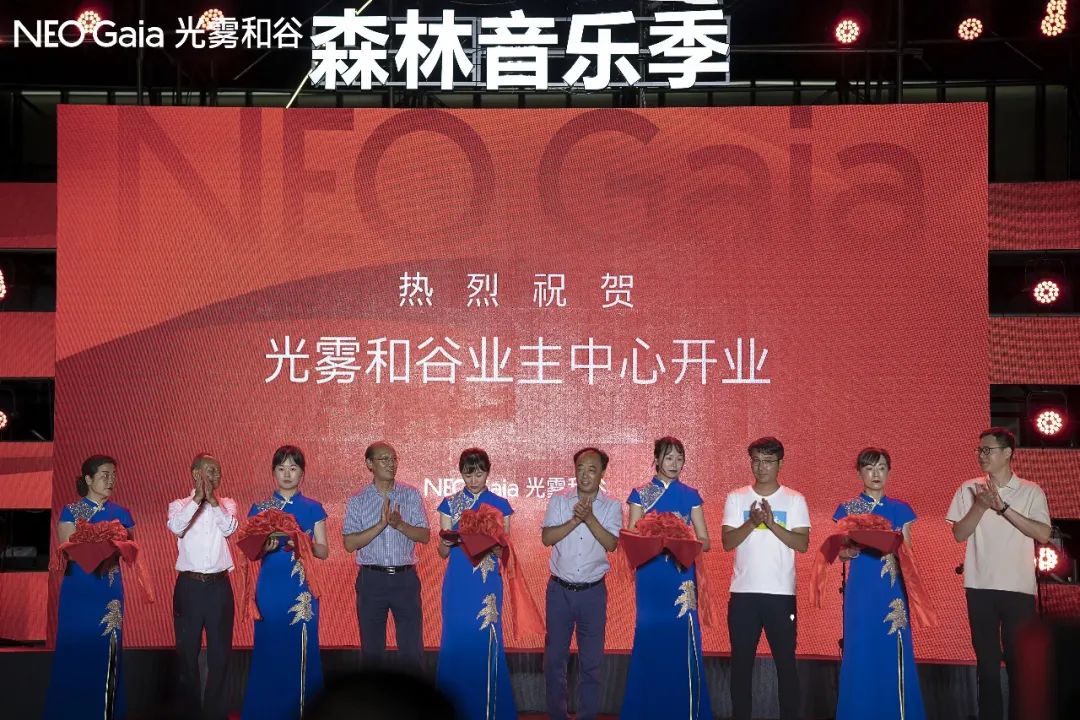 四川省開元集團(tuán)董事長趙思儉、四川省開元集團(tuán)副董事長、文旅事業(yè)部總經(jīng)理趙文承,光霧和谷項目總經(jīng)理楊廣常、巴中市秦巴田園農(nóng)業(yè)發(fā)展有限公司后勤中心項目負(fù)責(zé)人李茂軒、業(yè)主代表劉宏偉為光霧和谷業(yè)主中開業(yè)剪彩